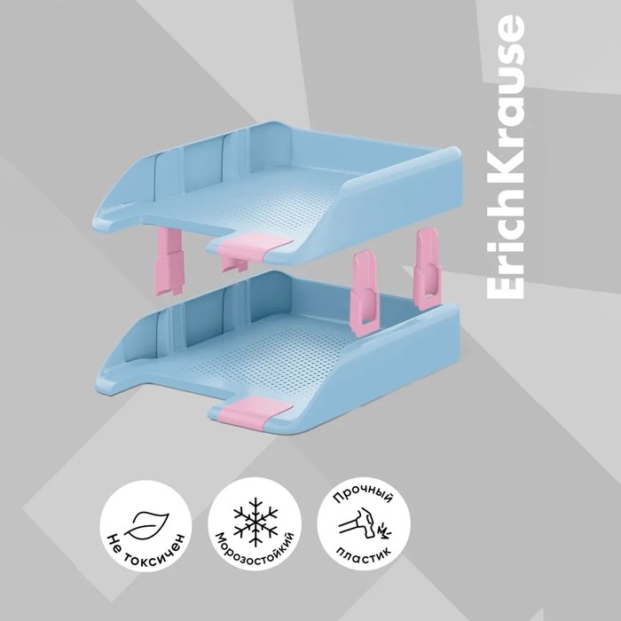 Настольный набор лотков для хранения документов, журналов и каталогов. Изготовлен из высококачественного пластика. Благодаря специально разработанной перфорации основания и надежному боковому креплению лотки легко устанавливаются друг на друга в несколько ярусов, сохраняя при этом устойчивость конструкции.