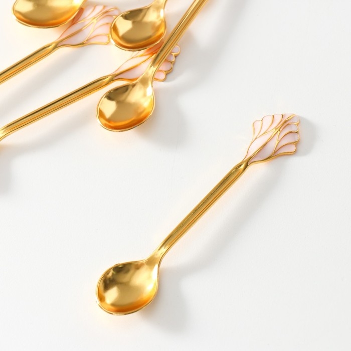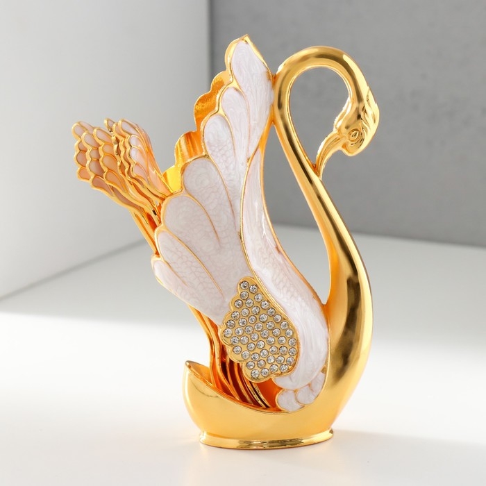 Набор из 6 шт сувенирных ложек в виде пера "Розовый лебедь со стразами" 5х8,5х15 см