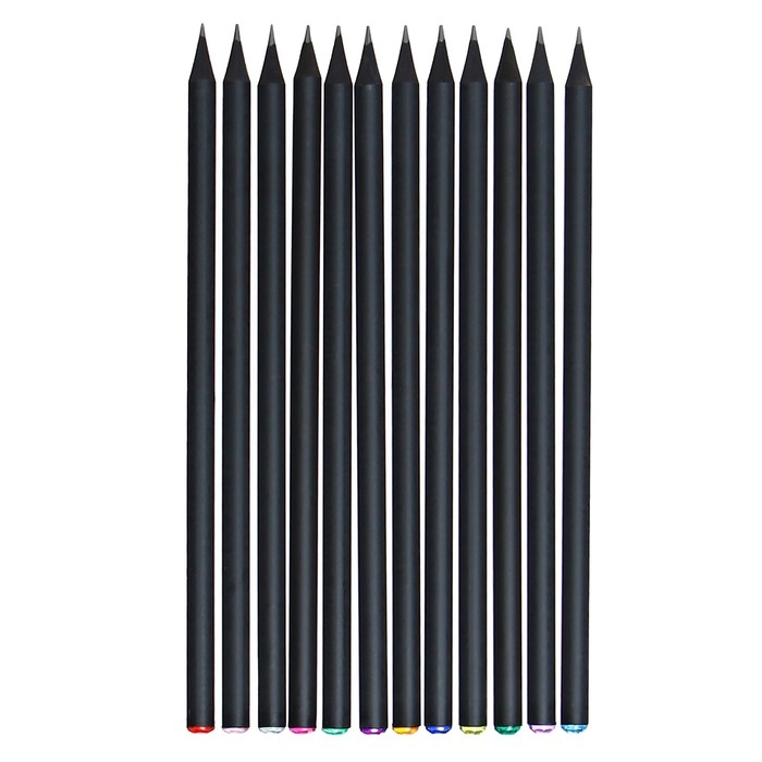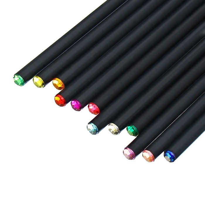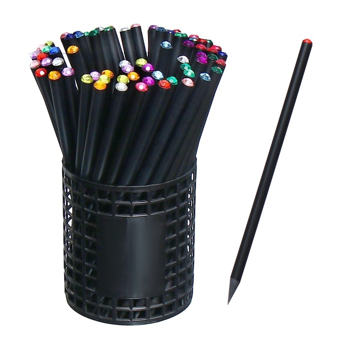 Набор карандашей чернографитных 72 штуки, НВ корпус черный заточенный со стразой