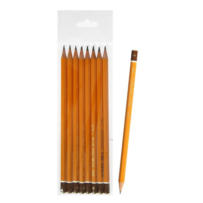 Набор карандашей чернографитных 8 штук, Koh-i-Noor 1500 В-B8, в пакете с европодвесом