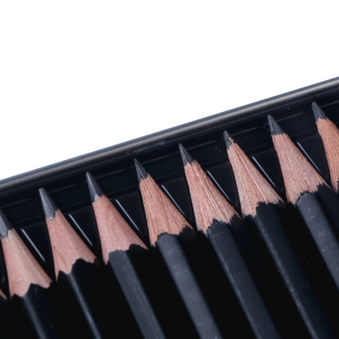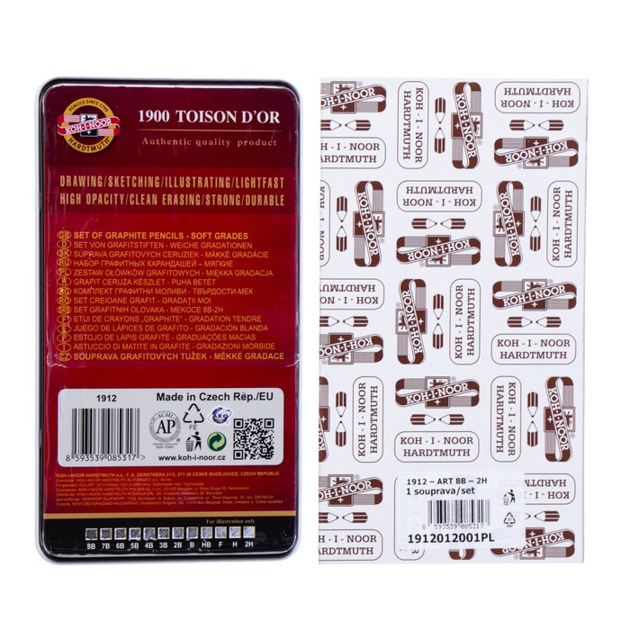 Набор карандашей чернографитных разной твердости 12 штук Koh-i-Noor 1912, 8B-2H, утолщённые, в металлическом пенале