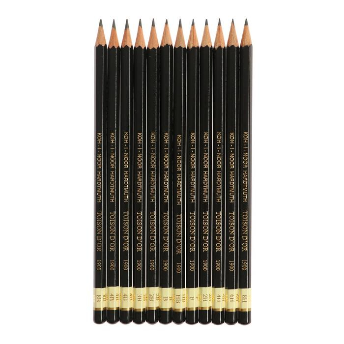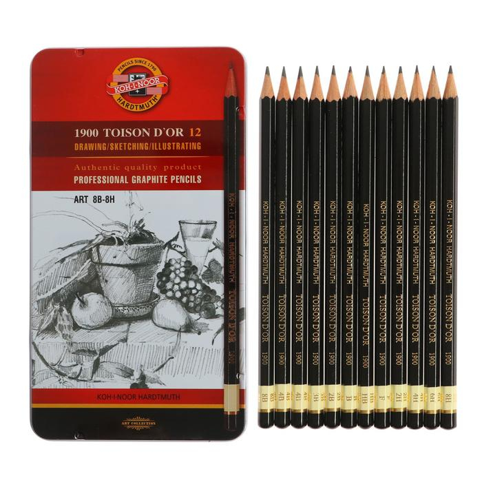 Набор карандашей чернографитных разной твердости 12 штук Koh-I-Noor TOISON D`OR 1902 ART 8B-8H, металлический пенал