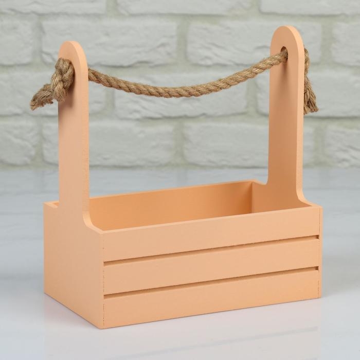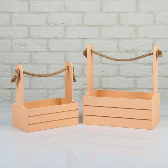 Набор кашпо деревянных 2 в 1 (25×15×30; 21×12×23 см) "Dear", ручка канат, персик