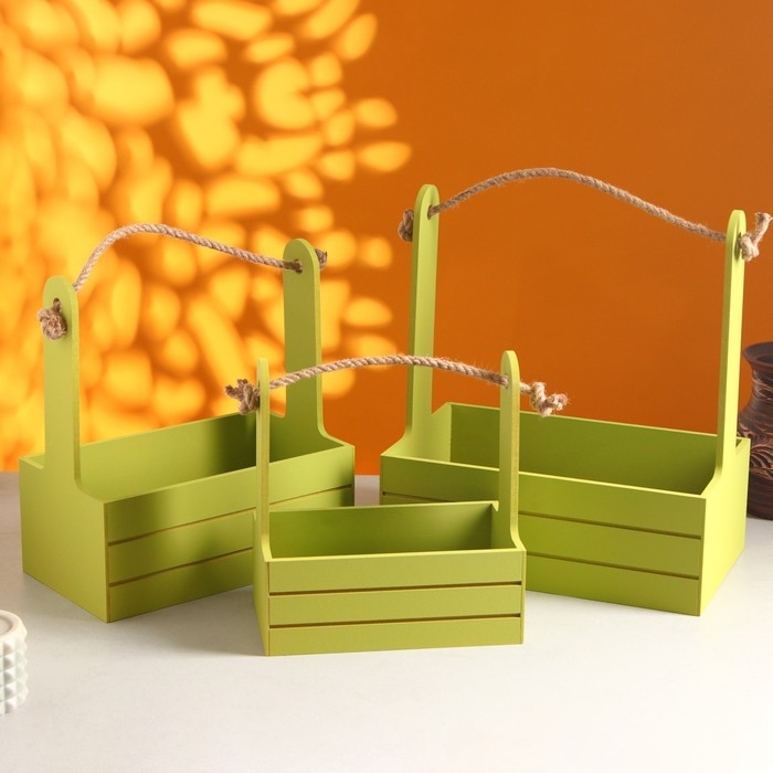 Набор кашпо деревянных 3 в 1 (29×18×33; 25×15×30; 21×12×23) "Аром", Фисташковый