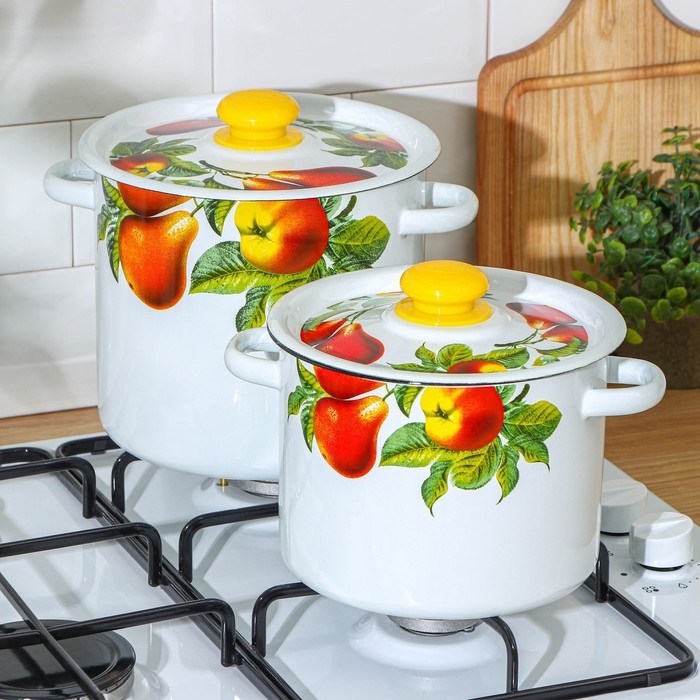 Набор кастрюль «Сочная вишня», 2 предмета: 4.5 л, 5 л, эмалированные крышки, цвет белый