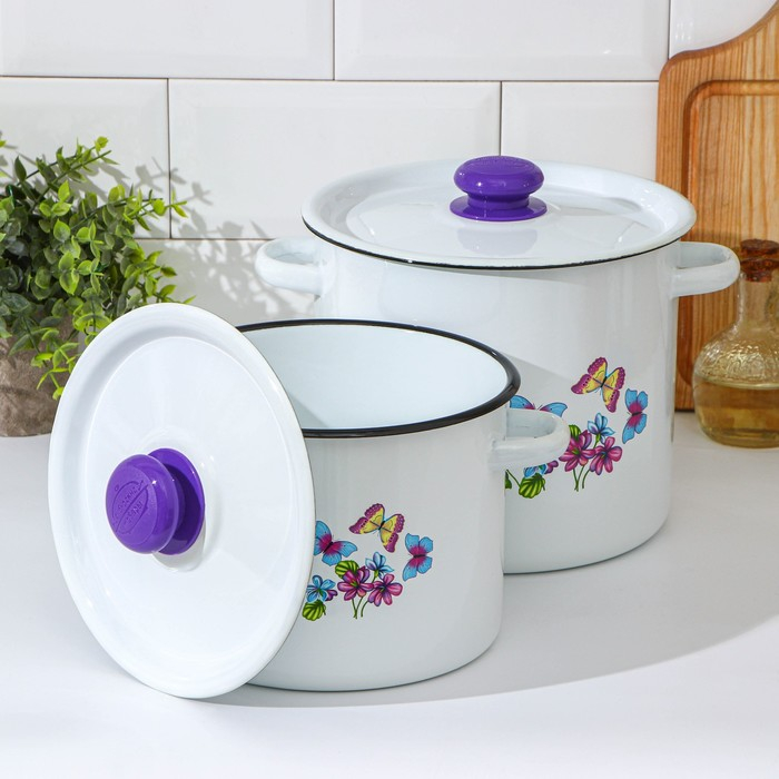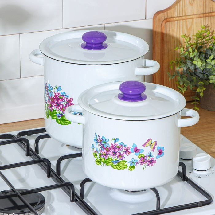 Набор кастрюль «Фиалка», 2 предмета: 3.5 л, 5.5 л, индукция, цвет МИКС