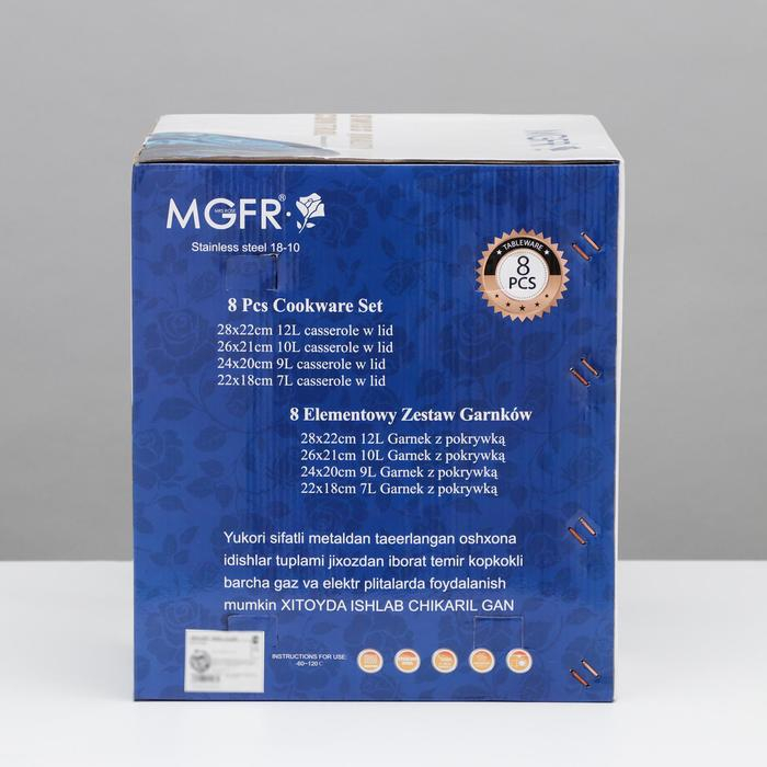 Набор кастрюль из нержавеющей стали «Абель», 4 предмета: 7 л, 9 л, 10 л, 12 л, крышки, индукция
