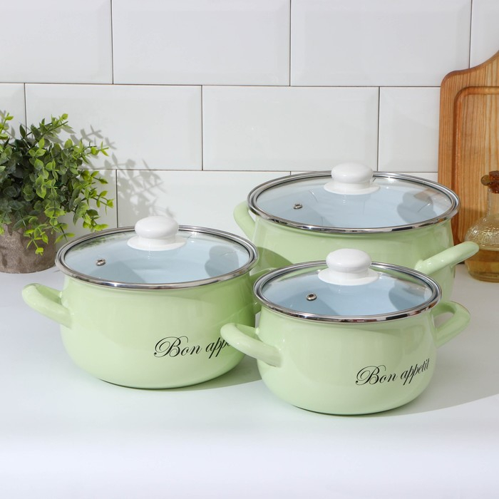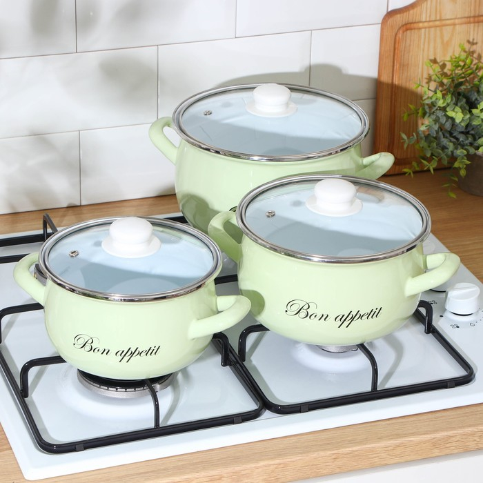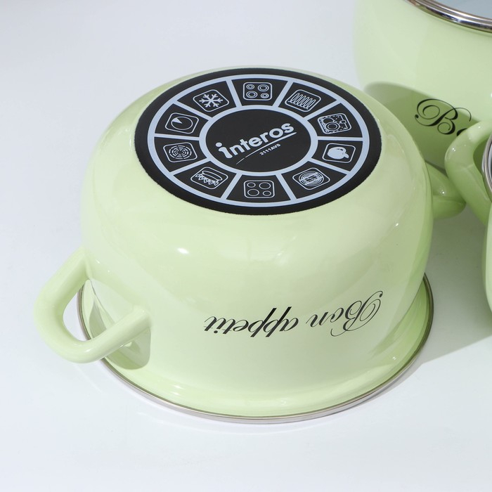 Набор кастрюль «Лайм», 3 предмета: 2,1 л, 3,1 л, 4 л, индукция, цвет светло-зелёный