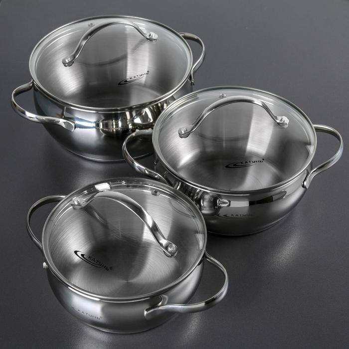 Набор кастрюль «Медея», 3 предмета: 1,6 л, 2,2 л, 3,2 л, капсульное дно, крышки, индукция