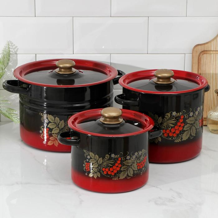 Набор кастрюль «Рябинка», 3 предмета: 3.5 л, 5.5 л, 8 л, индукция