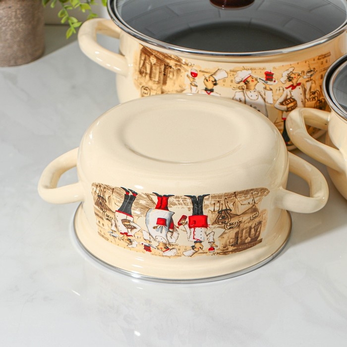 Набор эмалированных кастрюль «Китайская роза», 3 предмета: 1,5 л, 2 л, 3 л, индукция
