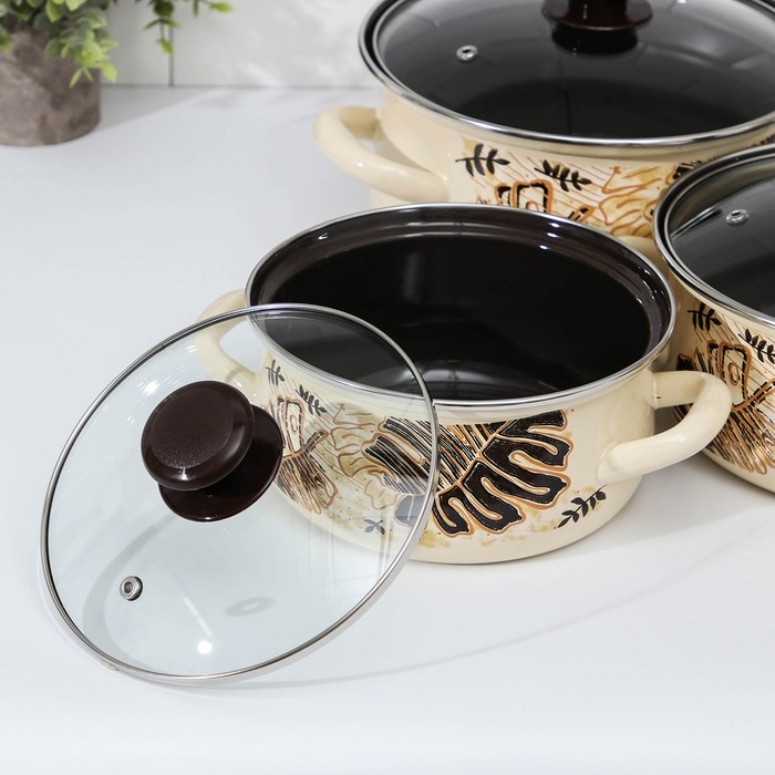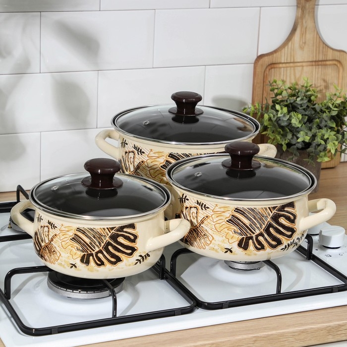 Набор эмалированных кастрюль «Китайская роза», 3 предмета: 1,5 л, 2 л, 3 л, индукция