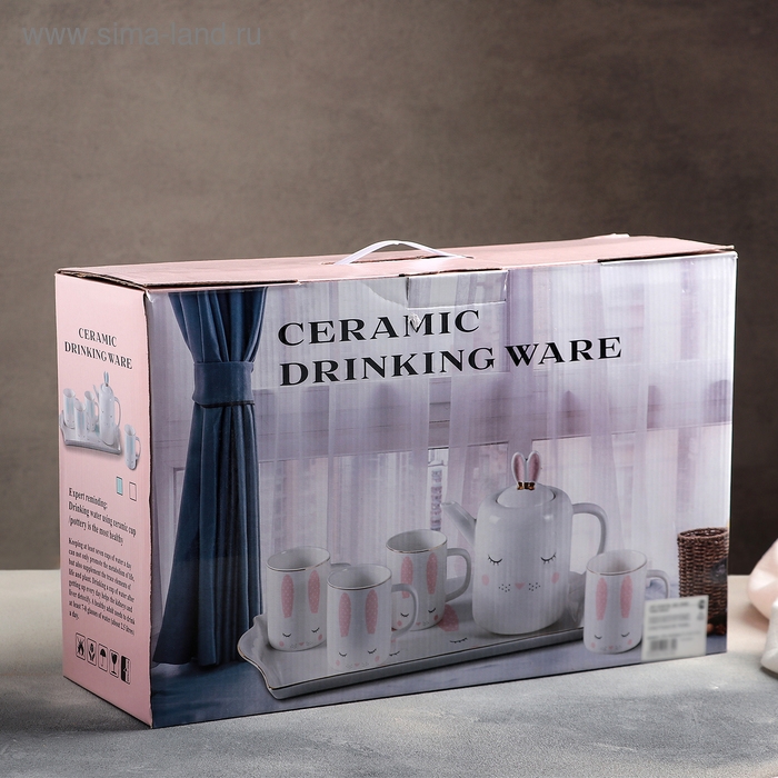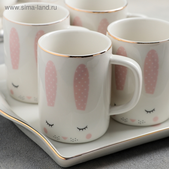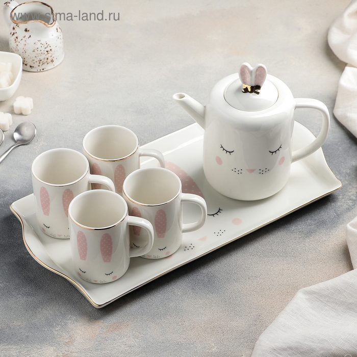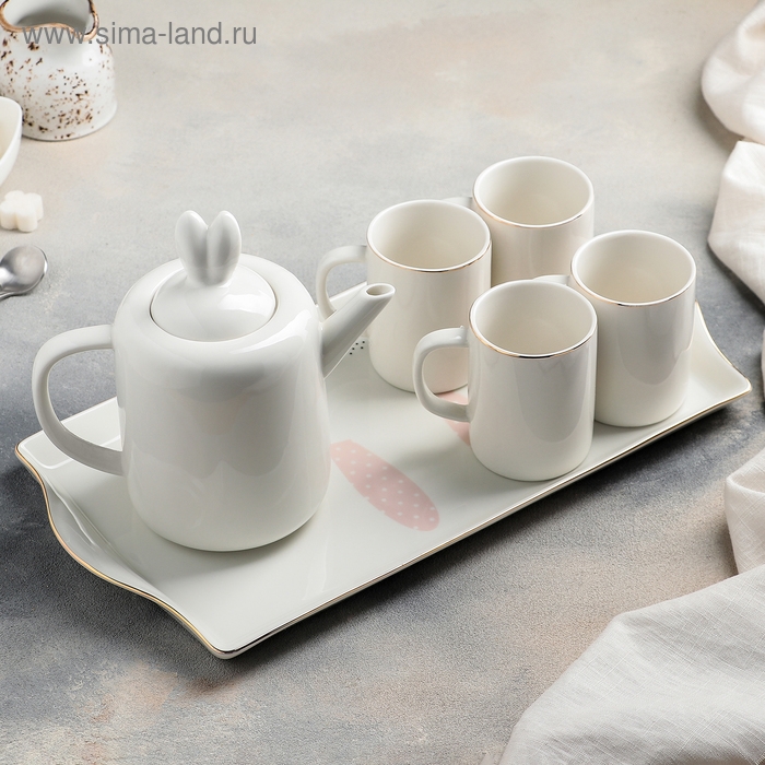 Набор керамический чайный «Зайка», 6 предметов: 4 кружки 220 мл, чайник 900 мл, поднос