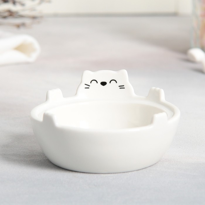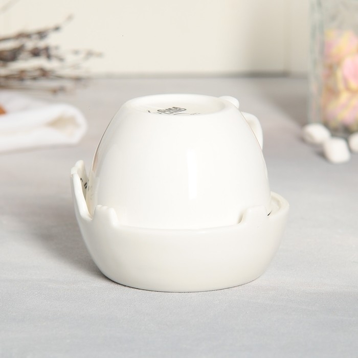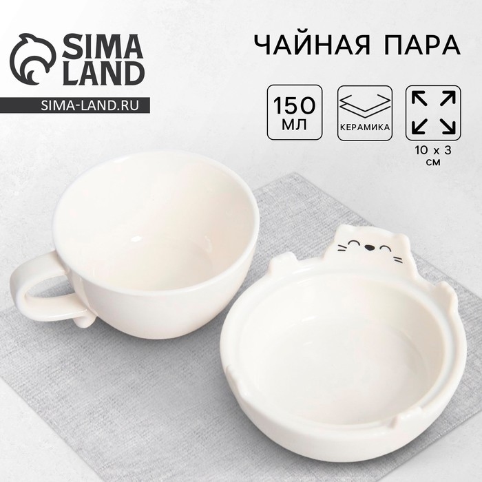 Набор керамический для чаепития «Белый кот», кружка 150 мл, миска 10х3 см, цвет белый