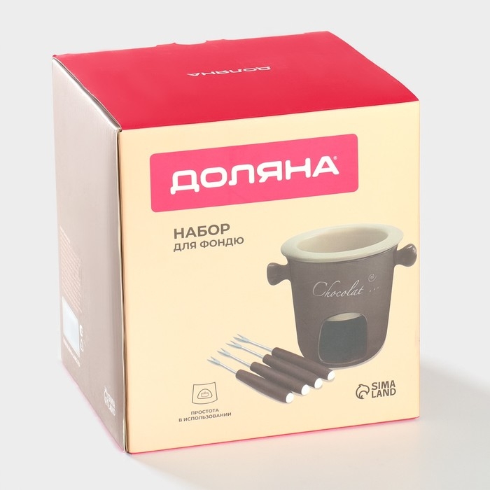Набор керамический для фондю Доляна «Шоколадница», 4 шпажки, цвет коричневый