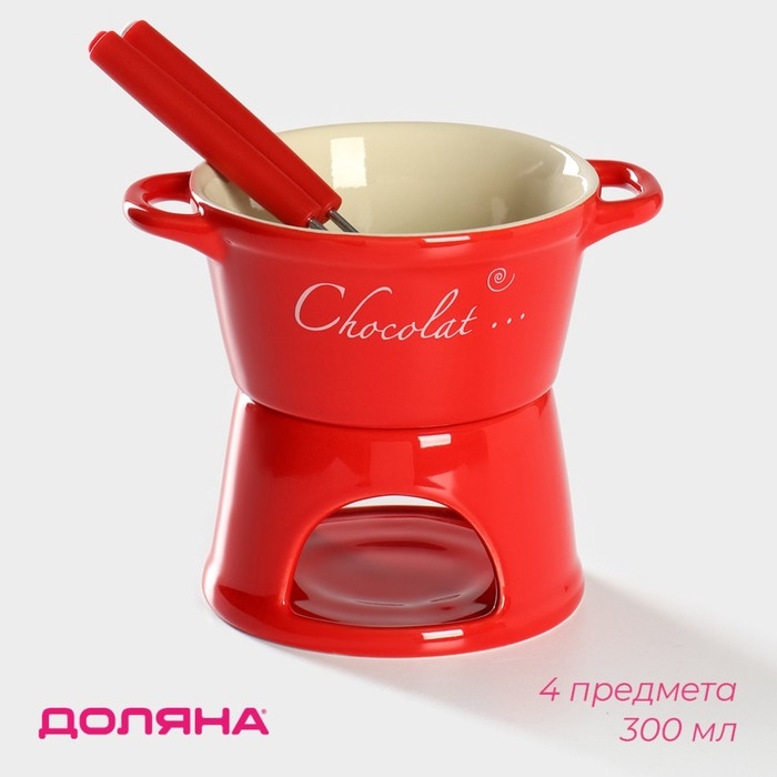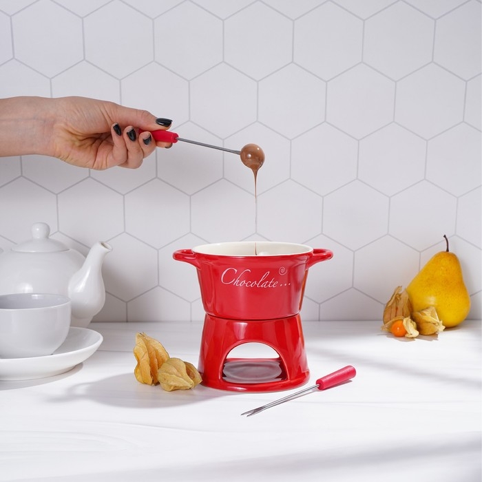 Набор керамический для фондю «Лакомка», 300 мл, 2 шпажки, цвет красный