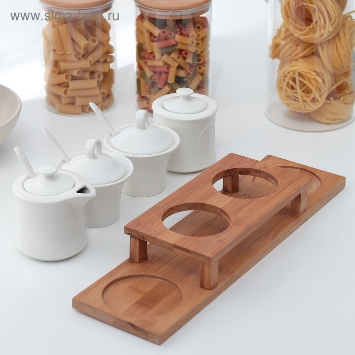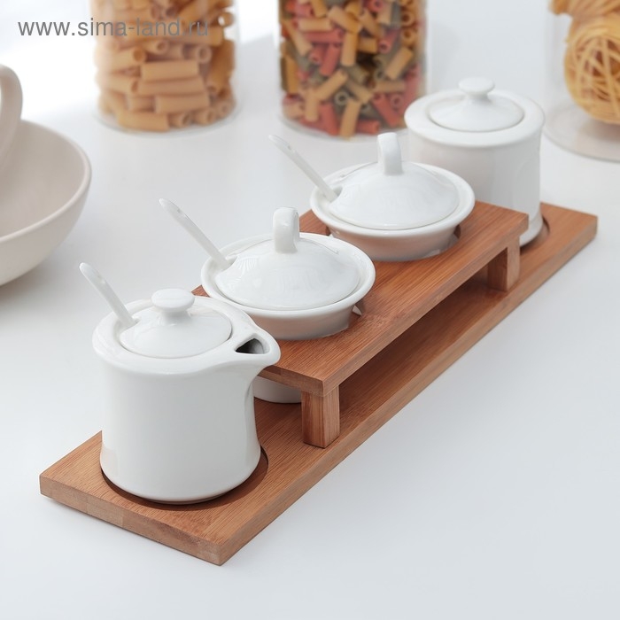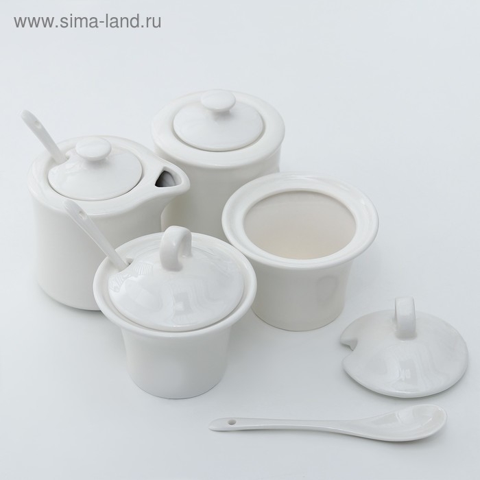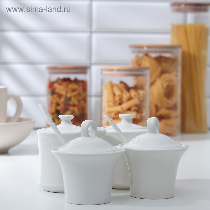 Набор керамический для специй и масел «Эстет», 4 предмета: 2 ёмкости 250 мл, 2 ёмкости 150 мл, 3 ложки