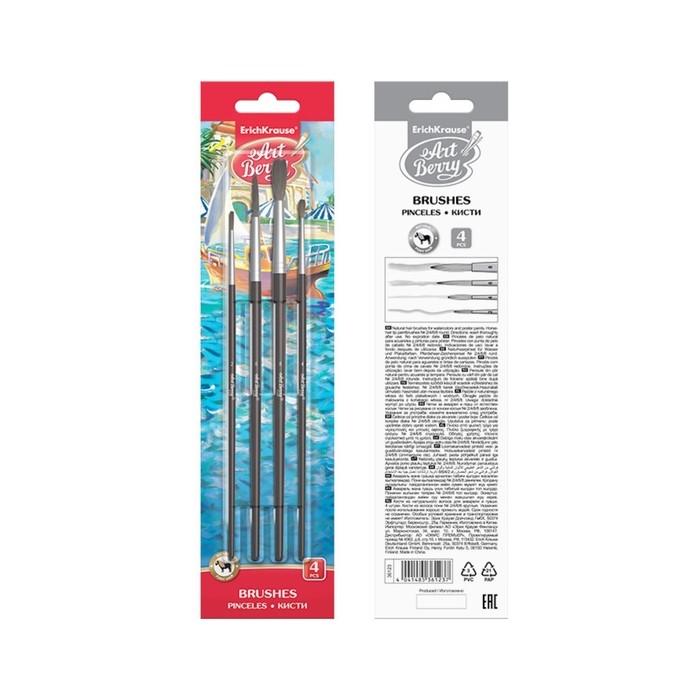 Набор кистей Пони 4 штуки Erich Krause, круглые № 2, 4, 6, 8, в блистере
