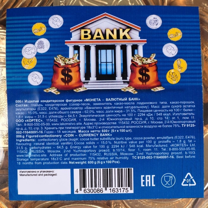 Набор кондитерских изделий "Валютный фонд", в пакете, 600 г