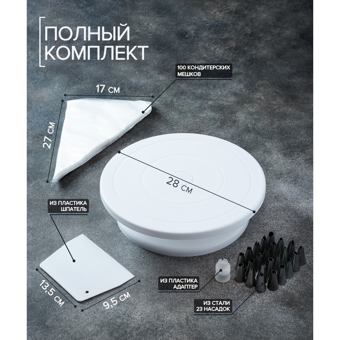 Набор кондитерский Доляна, 27 предметов: подставка, шпатель, мешок, адаптер, 23 насадки