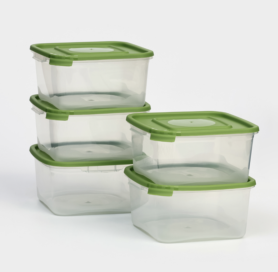 Набор контейнеров пищевых Доляна, 5 шт, 460 мл, 11x11x11 см, квадратные, прозрачные, крышки зелёные