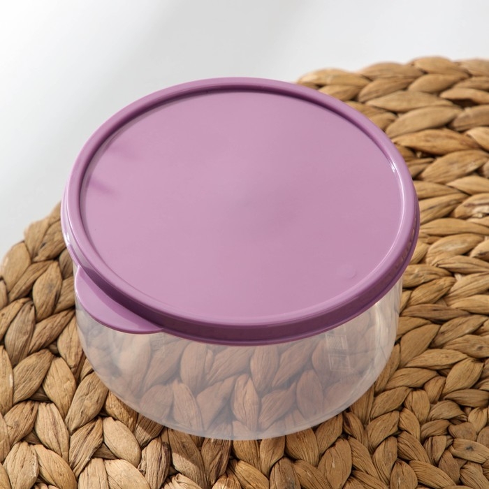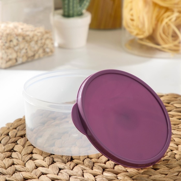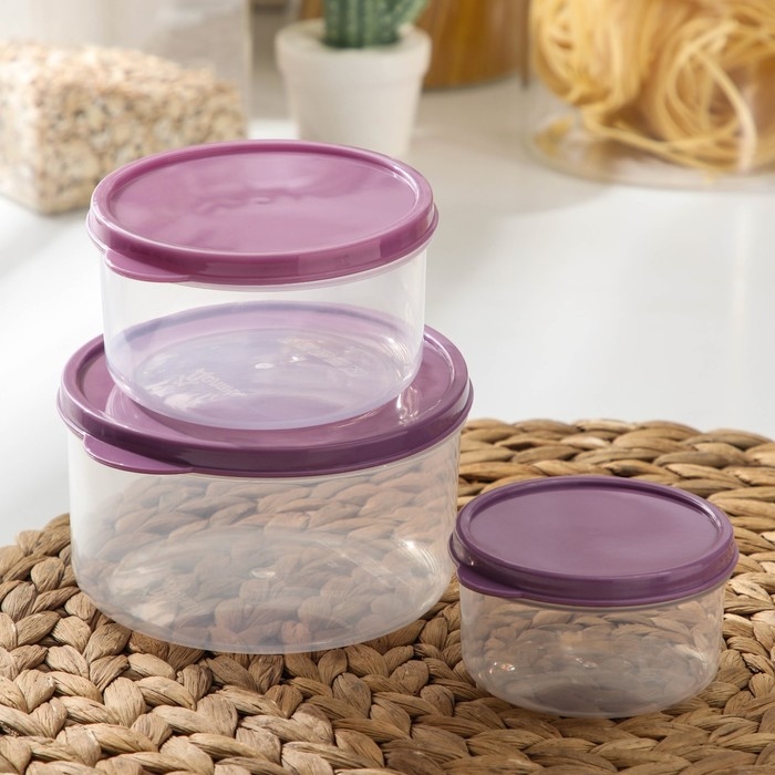 Набор контейнеров пищевых круглых Доляна, 3 шт: 150 мл, 300 мл, 500 мл, прозрачные, крышка фиолетовая