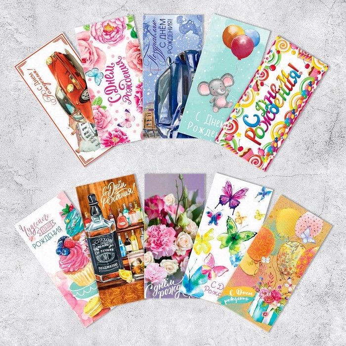 Набор конвертов для денег «С днём рождения», 10 шт.