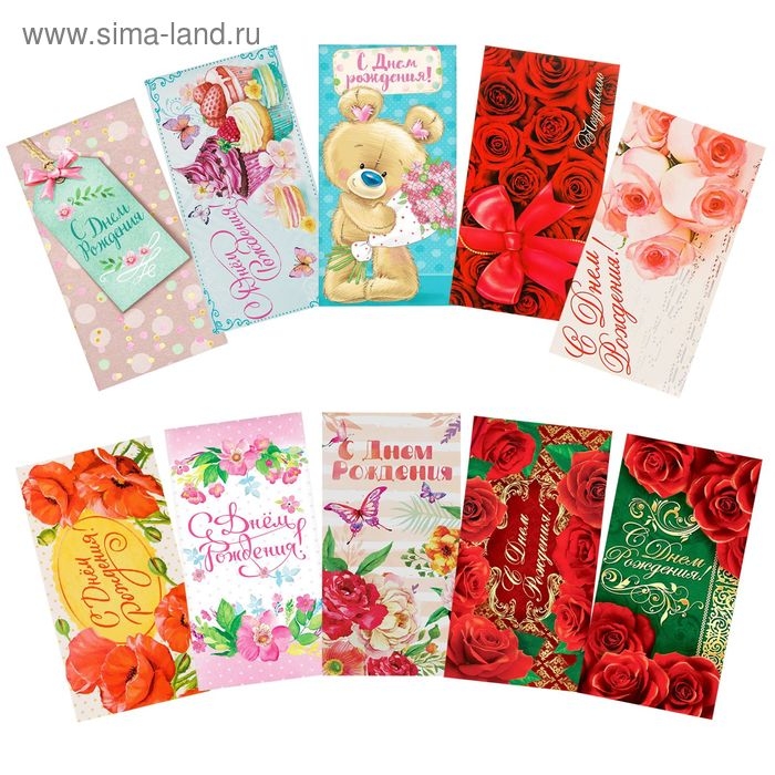 Набор конвертов для денег «С Днём рождения» цветочная фантазия, 10 шт. — отличный вариант для тех, кто не любит тратить время, бегая по магазинам в поисках конвертов.
