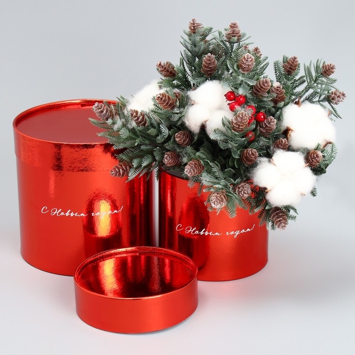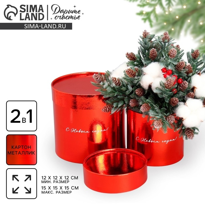 Набор коробок 2в1 круглые «С Новым годом!», красный металлик, 12 х 12, 15 х 15 см, Новый год