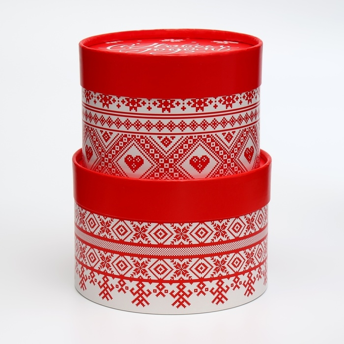 Новогодний набор круглых коробок 2 в 1 — это стильное и праздничное решение для упаковки подарков.