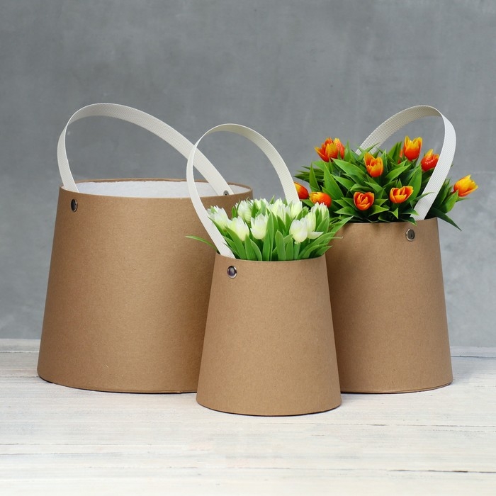 Набор коробок 3 в 1 Обратный конус крафт без крышек с ручкой 11-14 х 14-16 х 18-21