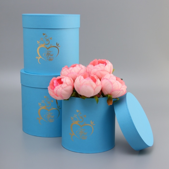 Набор подарочных коробок 3 в 1 с тиснением "Ты в моем сердце" в голубом цвете — это утонченное и романтичное решение для оформления подарков и букетов.