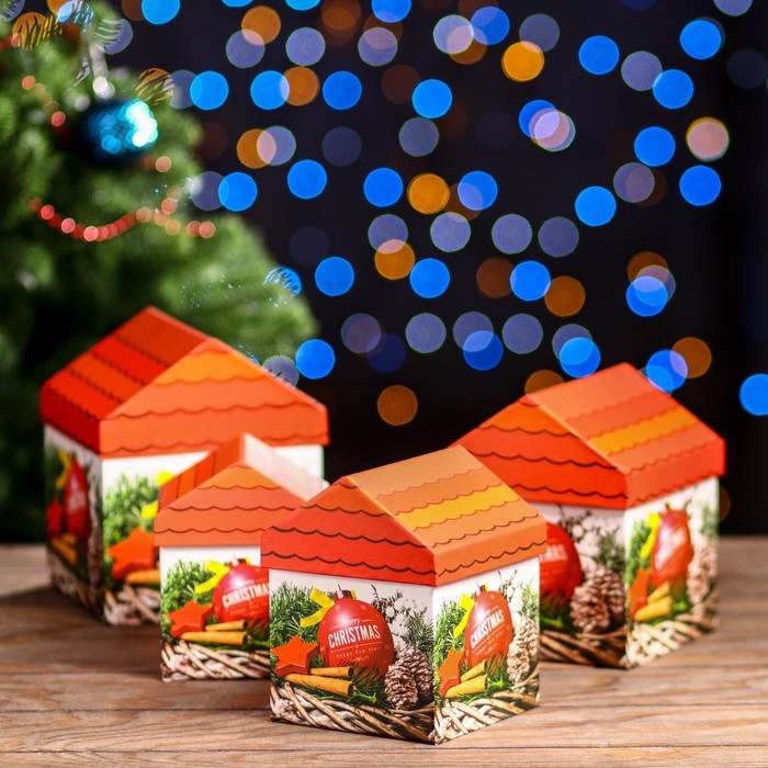 Набор коробок 4 в 1 "Новогодний дом" 15 х 15 х 18 - 10,5 х 10,5 х 13,2 см