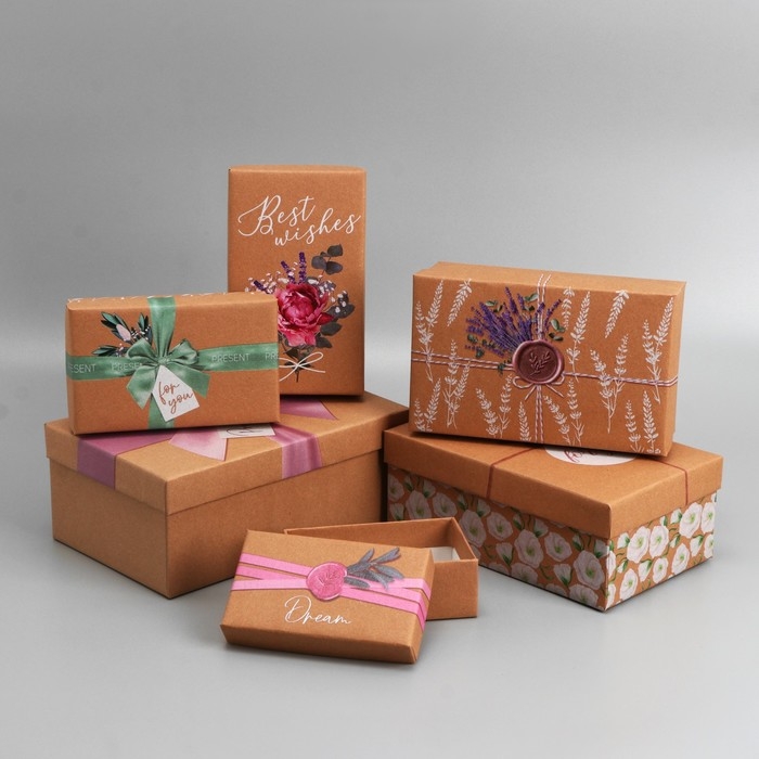 Набор коробок 6 в 1, упаковка подарочная, «Эко », 12 х 7 х 4 ‒ 22 х 14 х 8.5 см