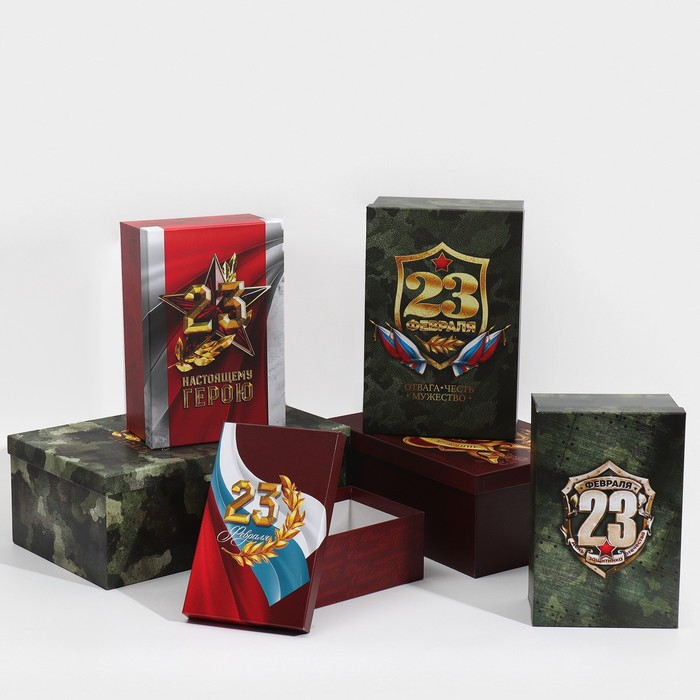 Набор коробок 6 в 1, упаковка подарочная, «С 23 февраля», 20 х 12.5 х 7.5 ‒ 32.5 х 20 х 12.5 см