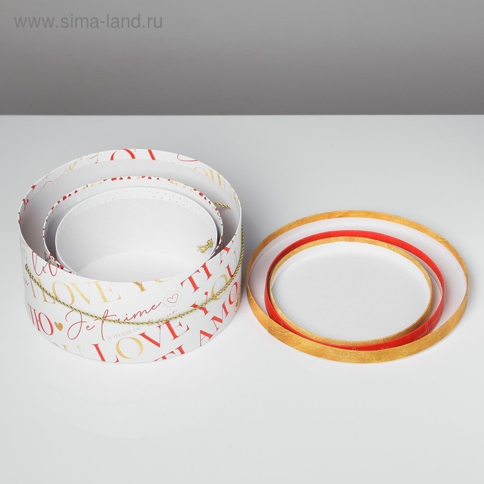 Набор коробок круглых 3 в 1 с ручкой, упаковка подарочная, «Love», 20 х 20 х 9.5 - 26 х 26 х 11.5 см