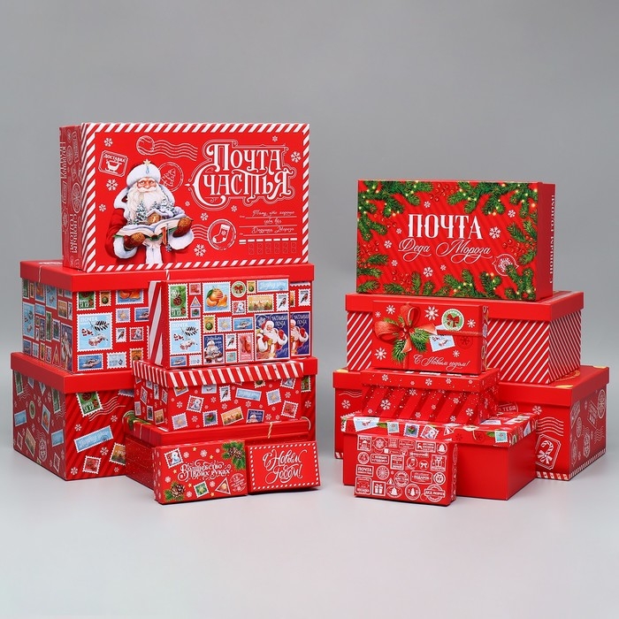 Набор коробок подарочных 15 в 1 «Новогодняя почта», 12 х 6.5 х 4 см - 46.5 х 30 х 17.5 см, Новый год