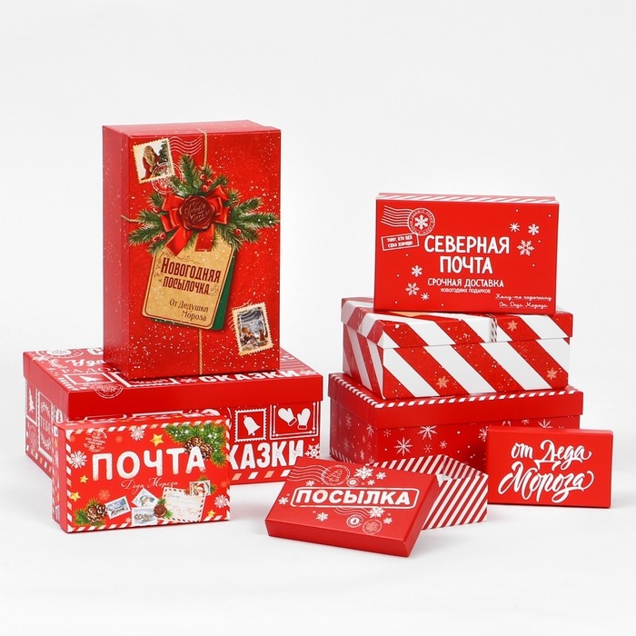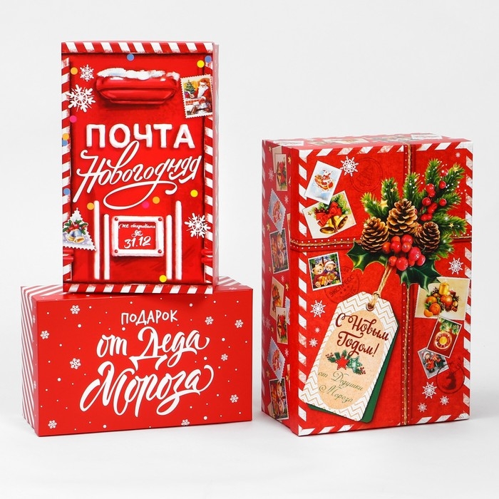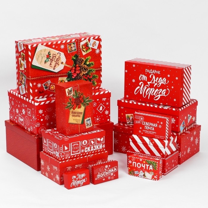 Набор коробок подарочных 15 в 1 «Почта», 12 х 7 х 4 см - 46,6 х 35,2 х 17.5 см, Новый год