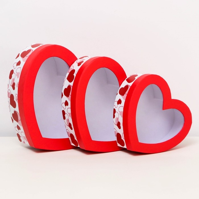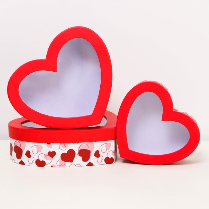 Набор коробок с окном 3 в 1 сердца L:22x18.5x6.5 M:19.5x16.5x5.8 S:15.5x14x5 см