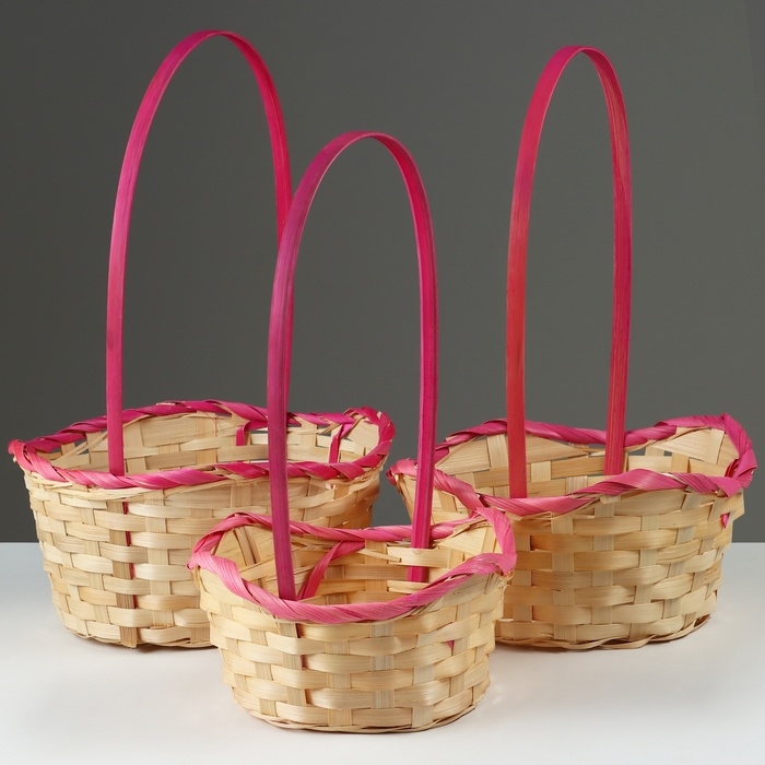 Набор корзин, 19х7,5х9,5/31 см, 22х9х11/34 см, 24х9х11,5/35 см, 3 шт, розовые, бамбук