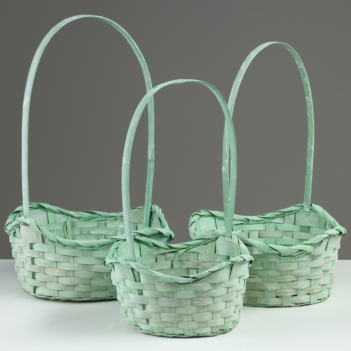 Набор корзин, 19х7,5х9,5/31 см, 22х9х11/34 см, 24х9х11,5/35 см, 3 шт, зелёные, бамбук