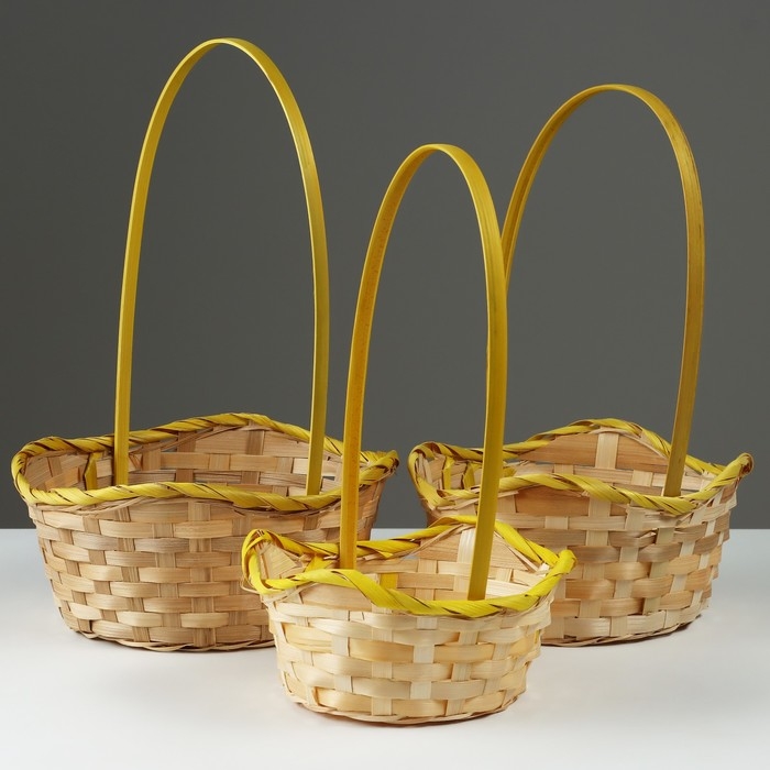 Набор корзин, 19х7,5х9,5/31 см, 22х9х11/34 см, 24х9х11,5/35 см, 3 шт, жёлтые, бамбук
