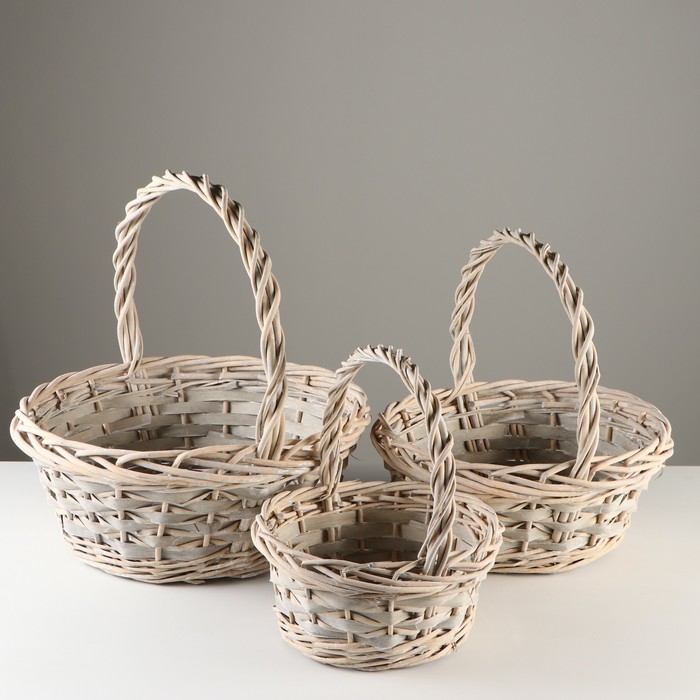 Набор корзин, 3 шт, 43х16/42 см, 35х14/35 см, 28х12/20 см, ива