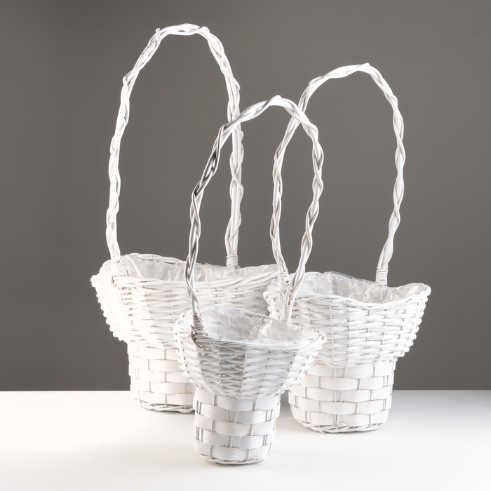 Набор корзин из 3 шт, 35x33xH23/64, 27x25xH21/58, 20x19xH20/53 см, белый, ива