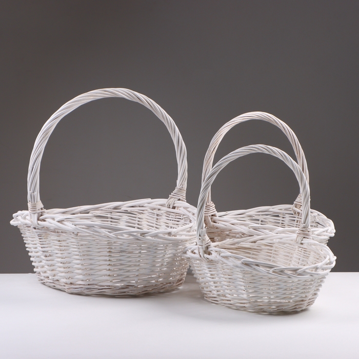 Набор корзин из 3 шт, 43х33х17/40 см, белый, ива