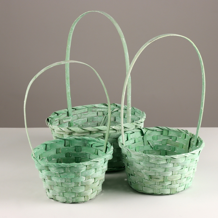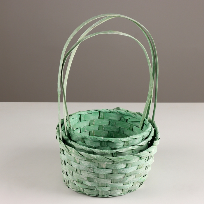 Набор корзин из 3 шт, D21х10хH36см, зеленый, бамбук