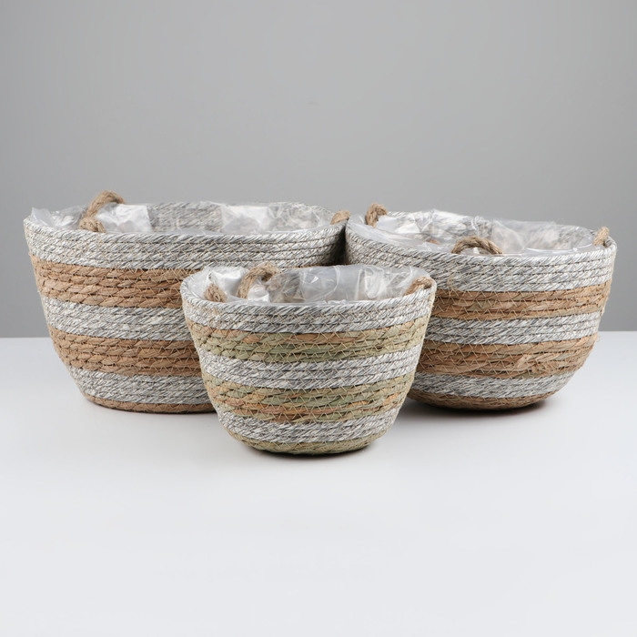 Набор корзин из 3 шт, D28xH18, D23xH16, D20xH13 см, рогоз