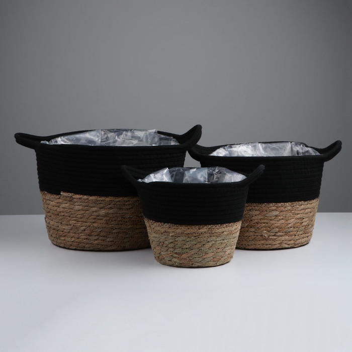 Набор корзин из 3 шт, D30xH23, D25xH20, D22xH17 см, рогоз