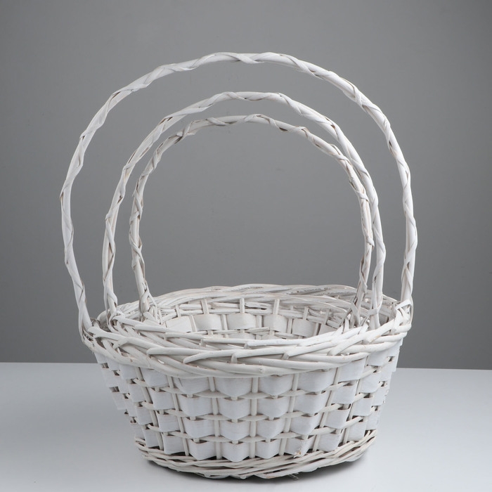 Набор корзин из 3 шт, D37xH16/44 см, D30xH14/38 см, D25xH12/33 см, белый, ива