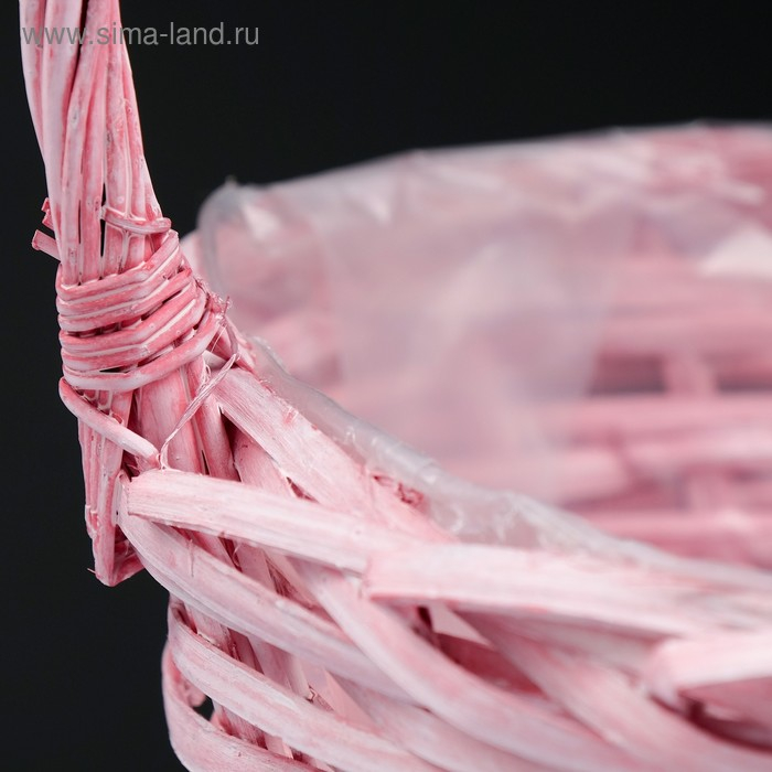 Корзина плетеная бамбук, D13xH9,5/28см, светло-розовая